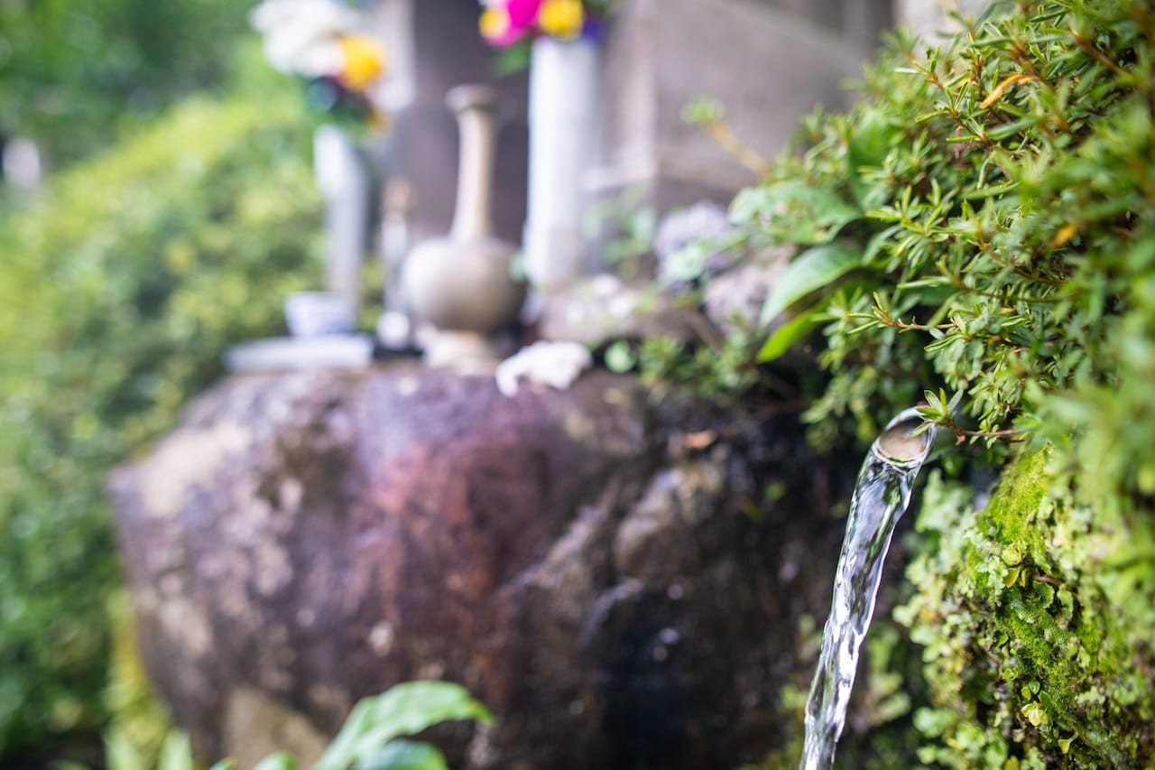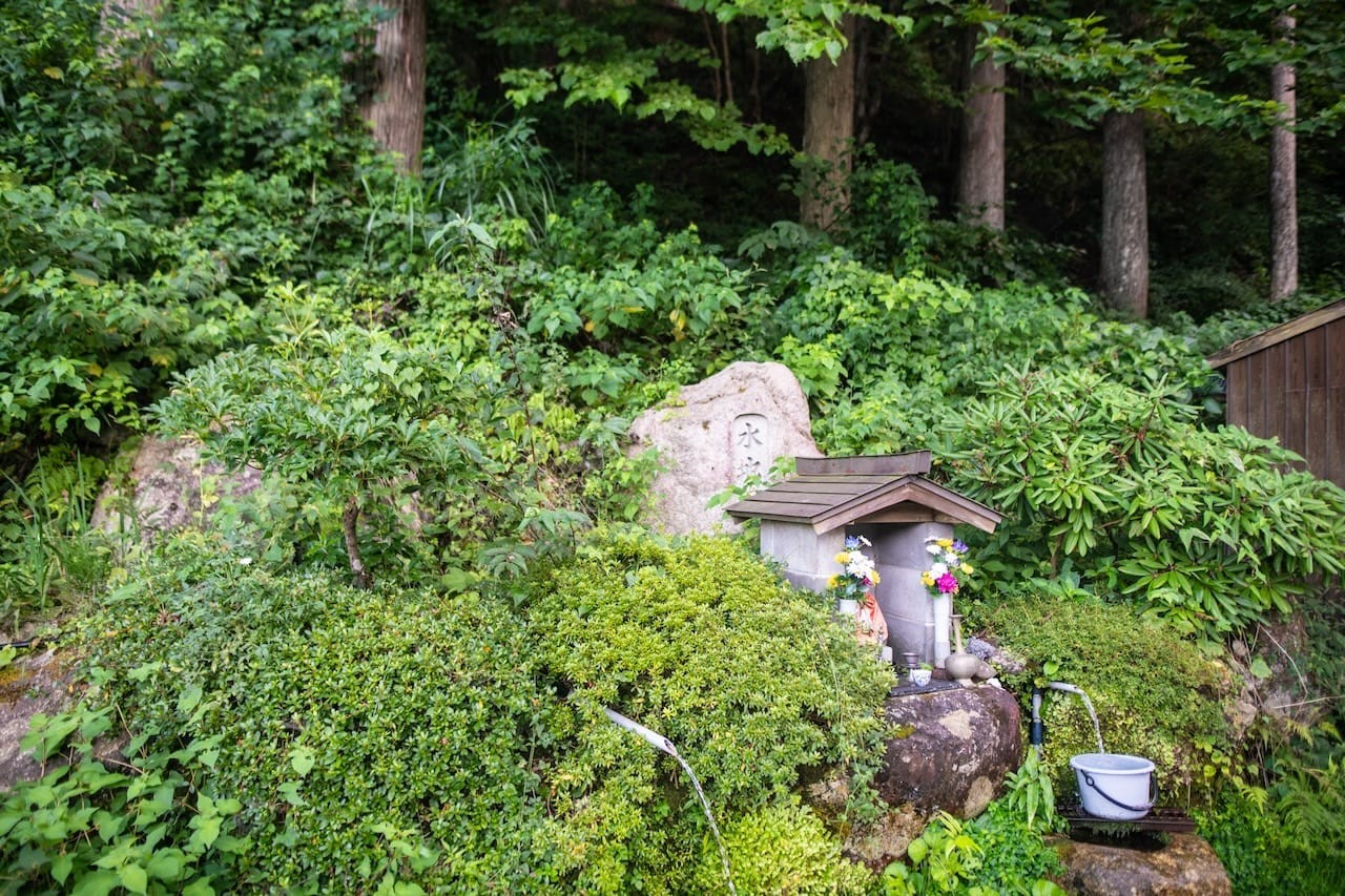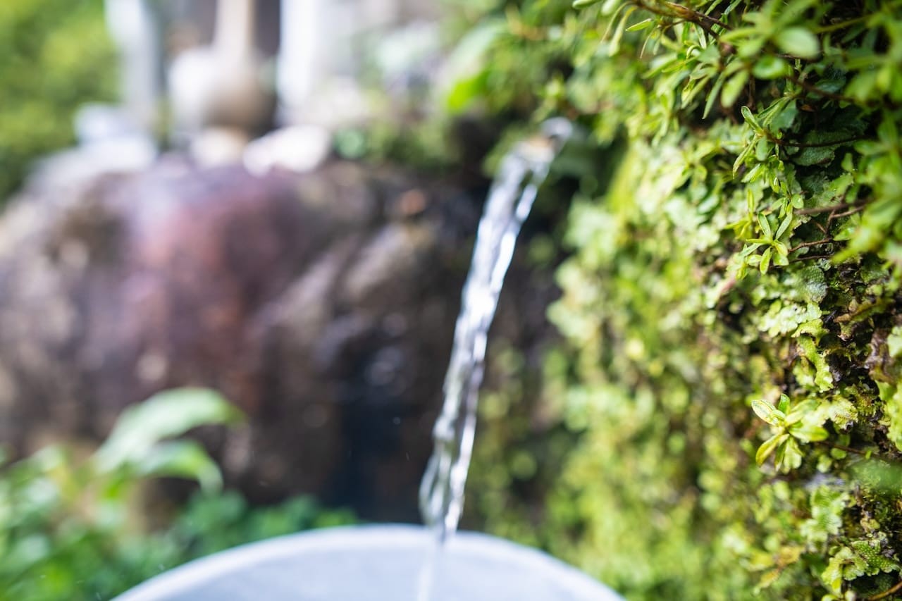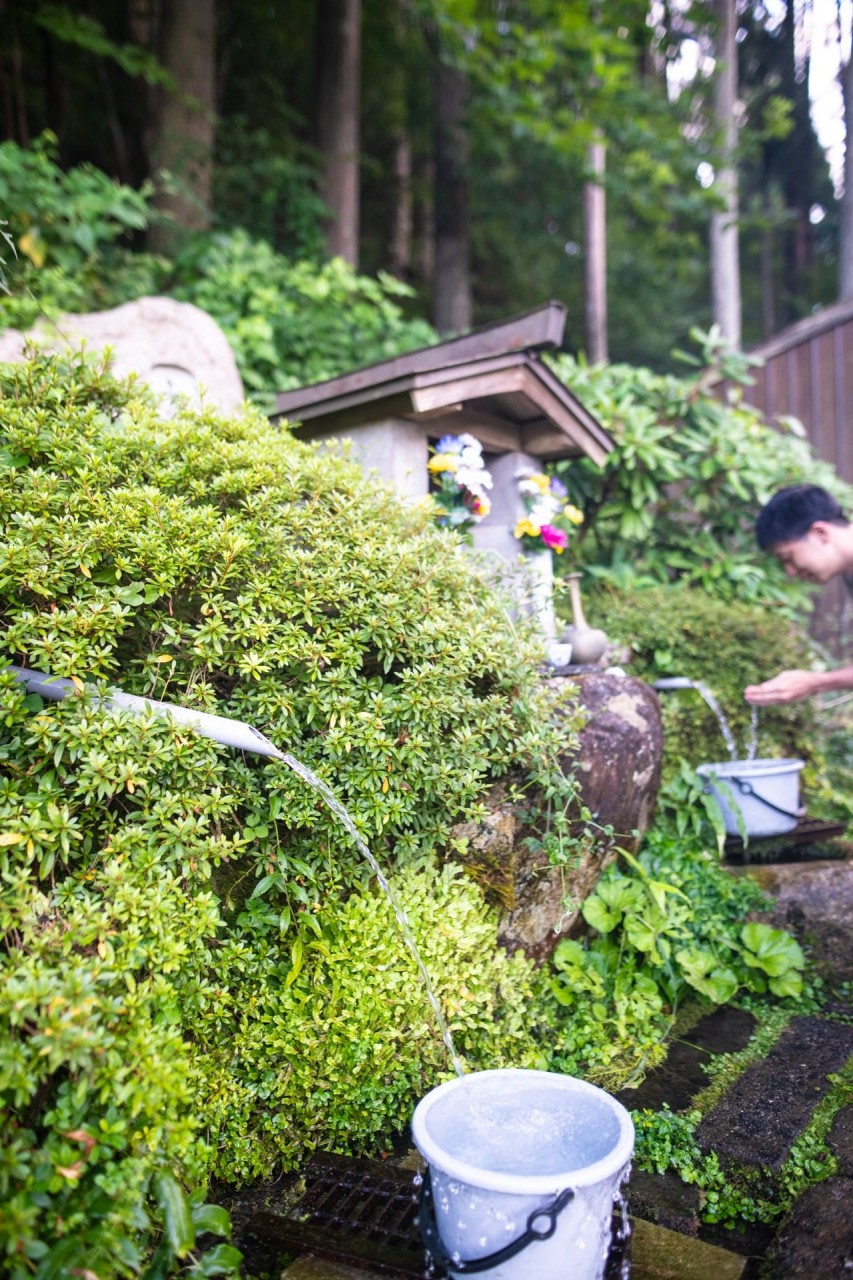 帰り道では、湧き水をくみました。